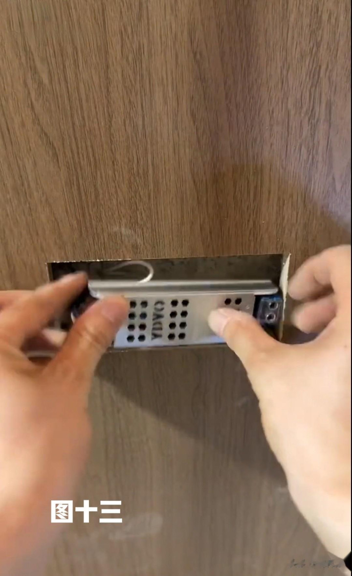床头板在往墙上挂之前,一定要把床头灯带装置好,具体灯带的装置步履及变压器的遗弃位置(见图十~图十四)
