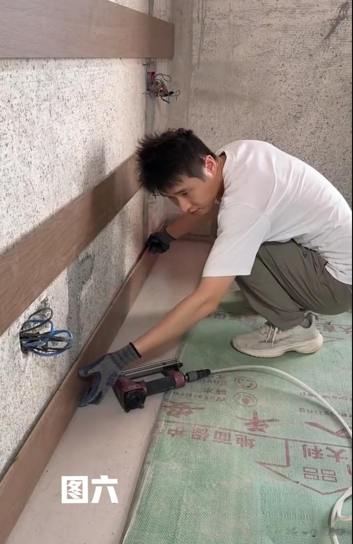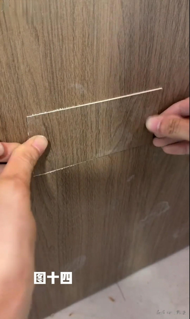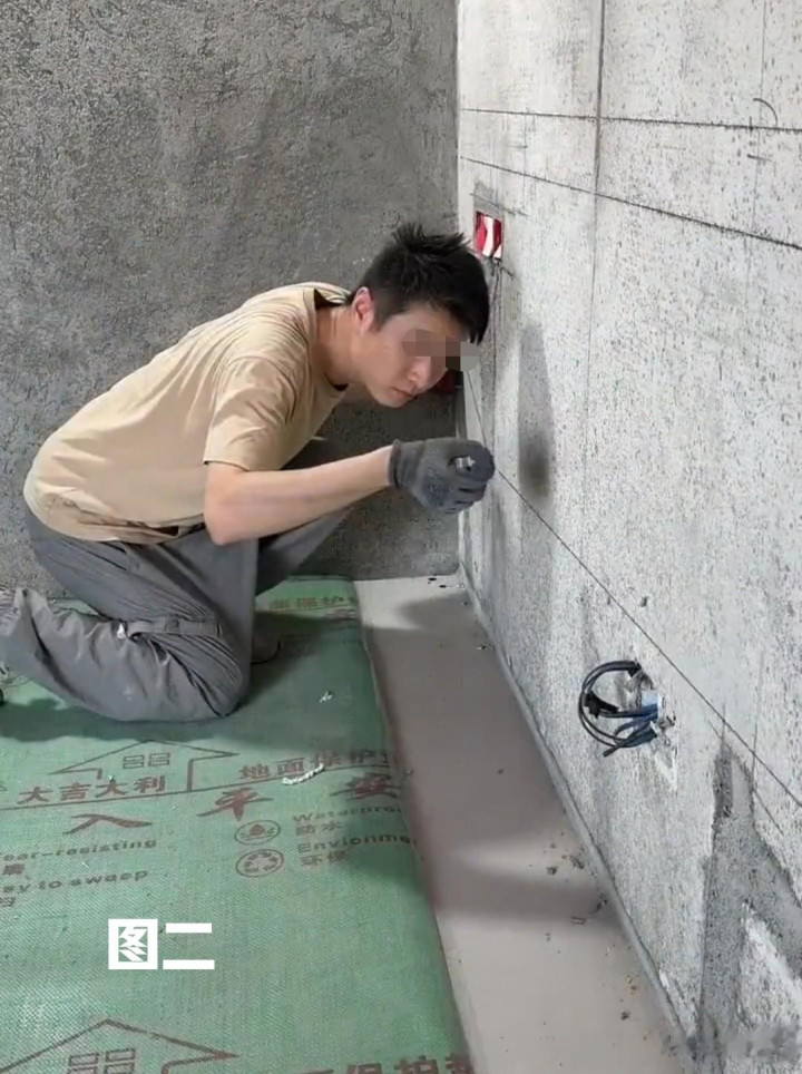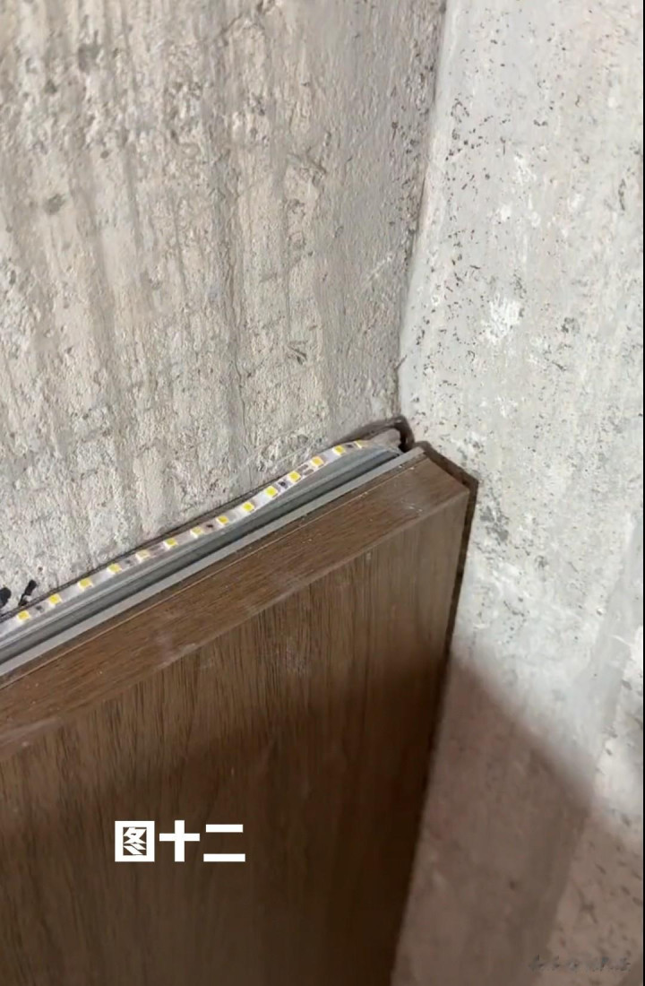 3:墙上固定裁切好的45度挂条、铣插座孔