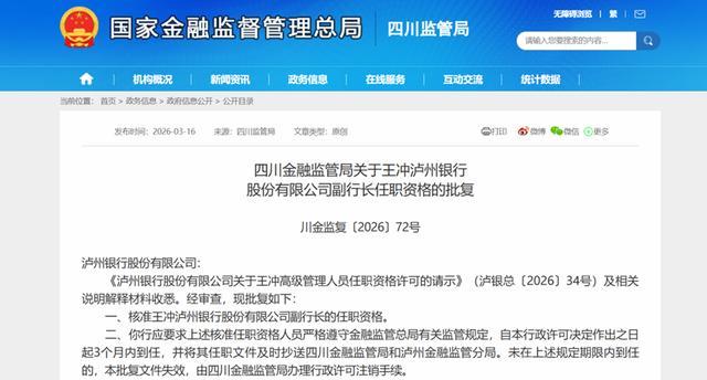 值得小心的是,抢庄牛牛早在2025年1月,泸州银行就发布公告称,该行董事会礼聘王冲担任副行长,但其任职经历迟迟未能获取监管部门批准。