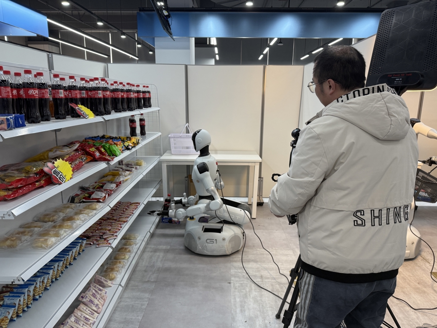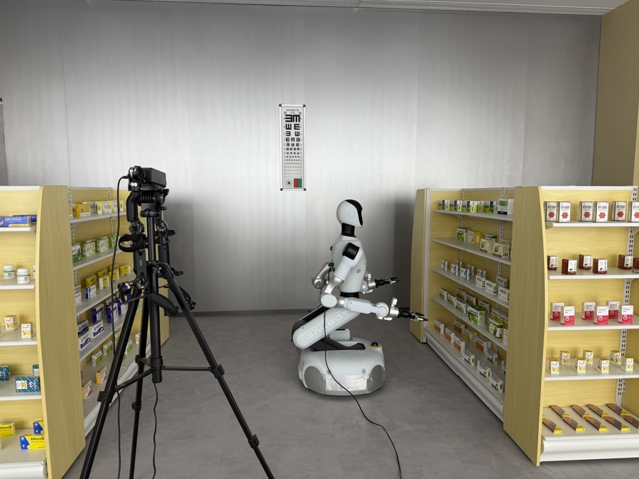 太湖具身智能产业园内,机器东谈主正在拿取货架上的物品。巩持平摄