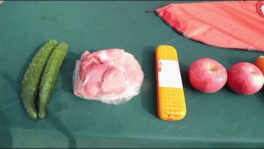 检修东说念主员预先准备了黄瓜、胡萝卜、苹果、猪肉、鸡胸肉等说念具,并选择了市集上常见的直径约1毫米的尼龙材质风筝线。
