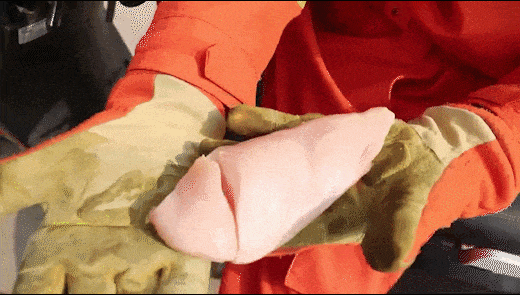 随后,检修东说念主员用猪肉和鸡肉模拟东说念主的皮肤,来测试风筝线的蛮横进度。风筝线划过,猪肉和鸡肉上均出现几厘米深的切口。