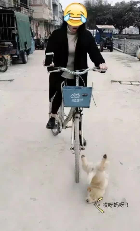 今天这位妹纸看我方的狗子不欢欣了,就思着用自行车拉狗子出去望望风景。