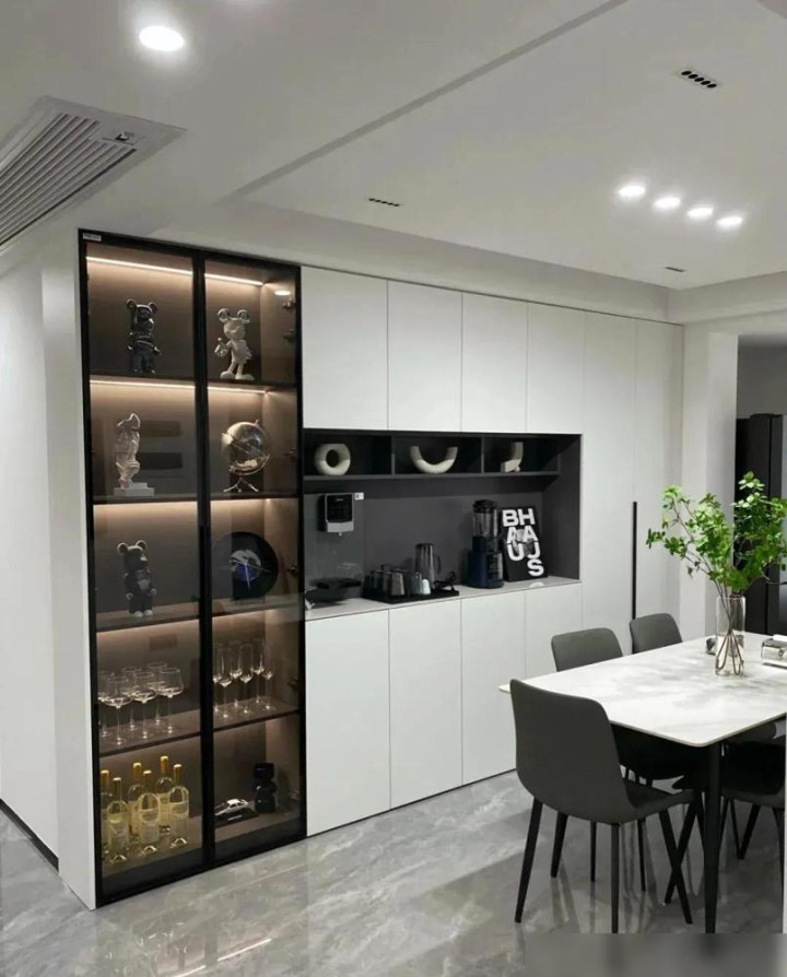 餐边柜作念玻璃门展示柜很实用。放点面子的杯子或藏品,能立马增添生计气味。但光有柜子还不够。餐厅连着北阳台,后光好,其实很稳健摆两盆绿植。比如放盆散尾葵或者龟背竹,牛牛弘远挺拔,叶子油绿,立马能把短长灰的“静”给带“活”了。植物不光是装潢,更是家的不悦。