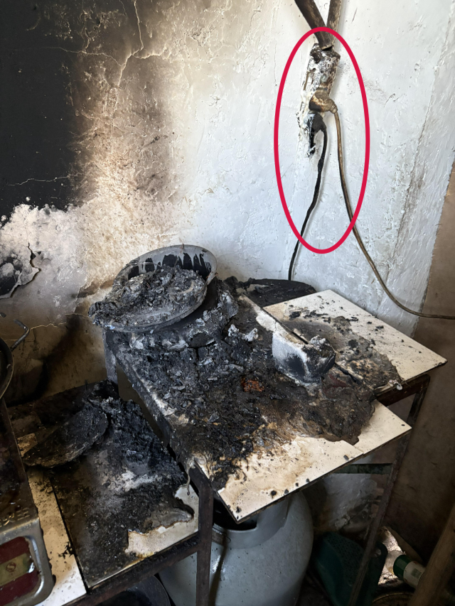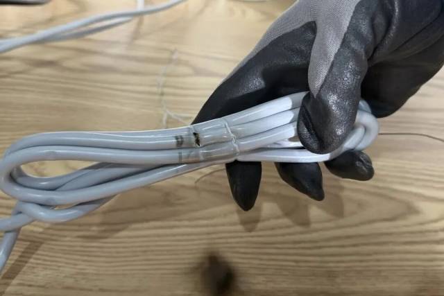 被捆扎的电线外表已烧焦