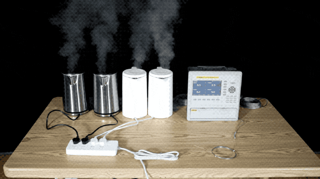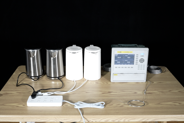 使命主说念主员将4台同规格的电热水壶插在并吞个国标插线板上,并将电线用捆扎带绑在一皆,倒入交流的水量后4台水壶同期使命,用测温仪实时监测电线的温度。跟着时期的推移,电线冒起缕缕青烟。