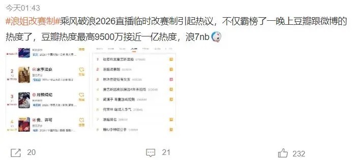 最环节的是,娱乐榜单上,50个热搜限额,有40个都和《浪姐7》关系,也即是说,节目组径直赢麻了,不得不说,节目组简直是好本事啊,综艺节目还得看芒果。